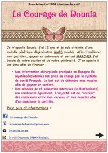Nous avons donc créé l’association “Le Courage de Dounia” afin de lui permettre de bénéficier de ces soins.